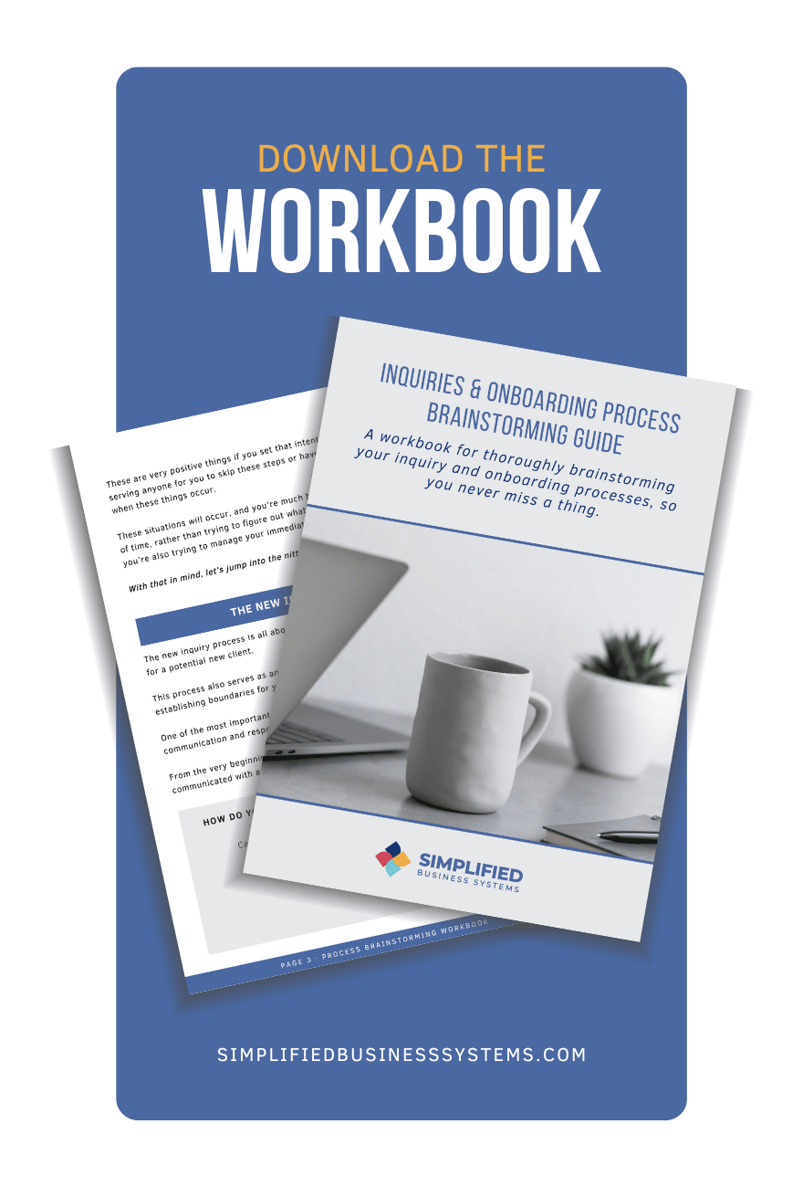 A workbook for thoroughly brainstorming your new inquiry and client onboarding processes, so you never miss a thing.